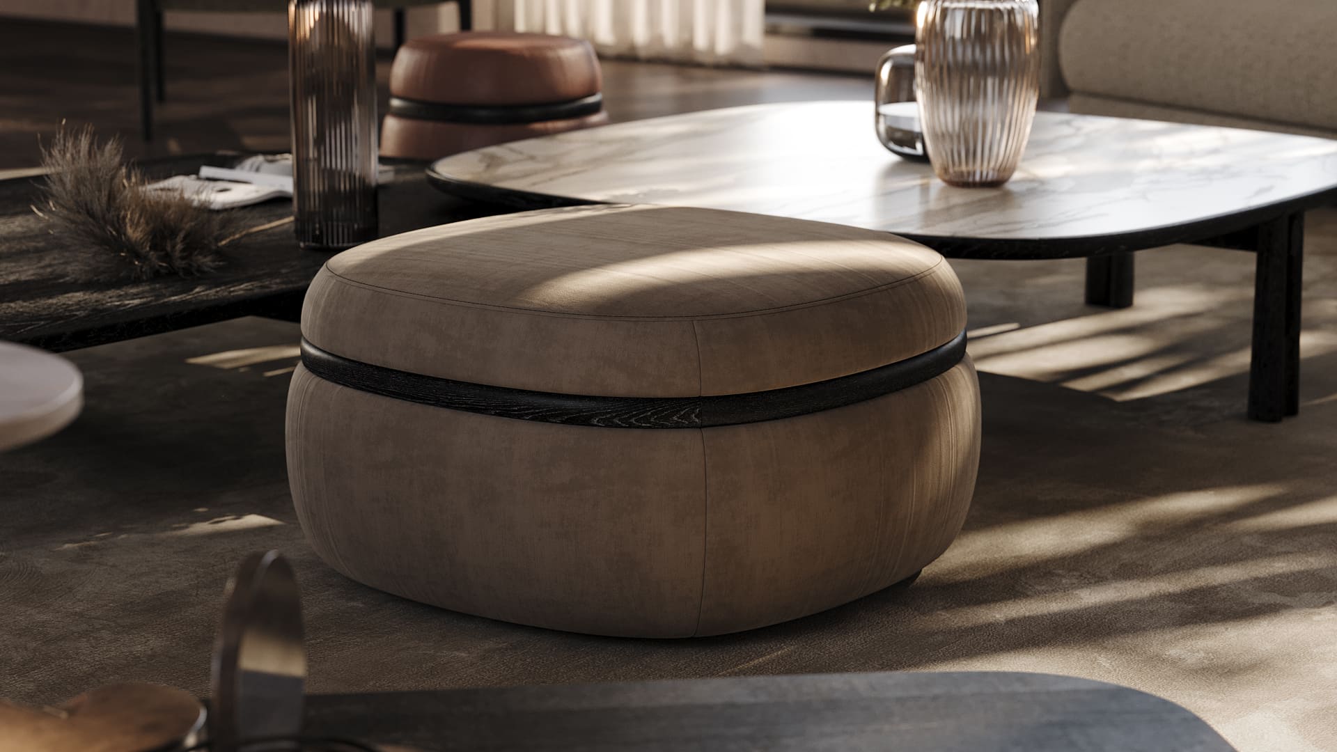 O pouf Pieter cria formas excecionais que revelam camadas de uma mistura de design italiano com materiais premium. Sob a aparência do conforto e da distinção, revela-se uma peça premium. Esta é de facto a pontuação necessária para narrar uma história de elegância e de seleção de materiais exclusivos.